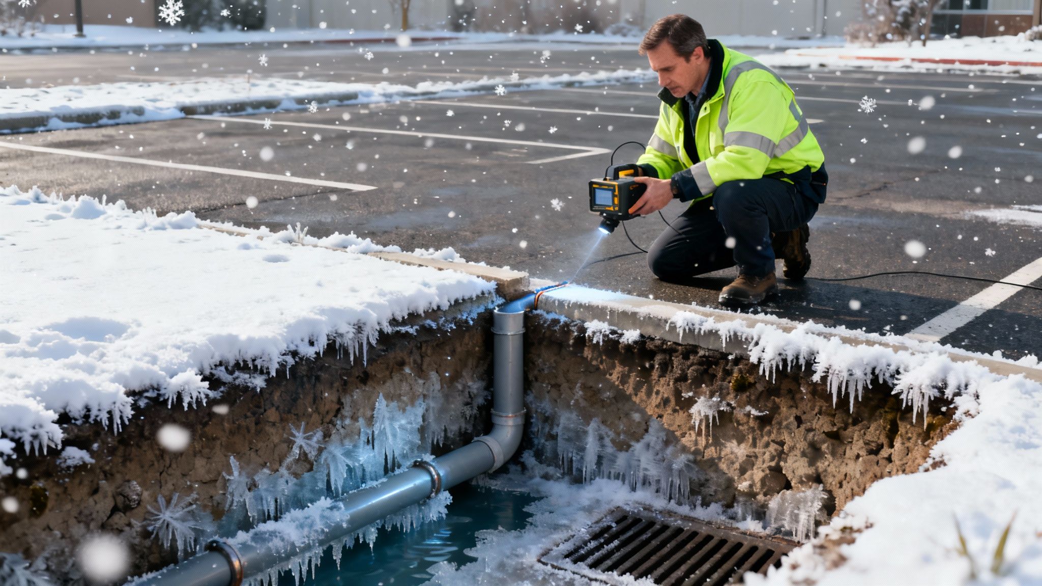 Knowing the risks is one thing, but taking action is what truly separates a prepared property manager from one who's just waiting for a disaster. A genuinely solid winter plan looks deeper than just surface treatments—it gets to the health of the infrastructure supporting your pavement. Before the first freeze hits, it’s time to add subsurface inspections to your checklist.